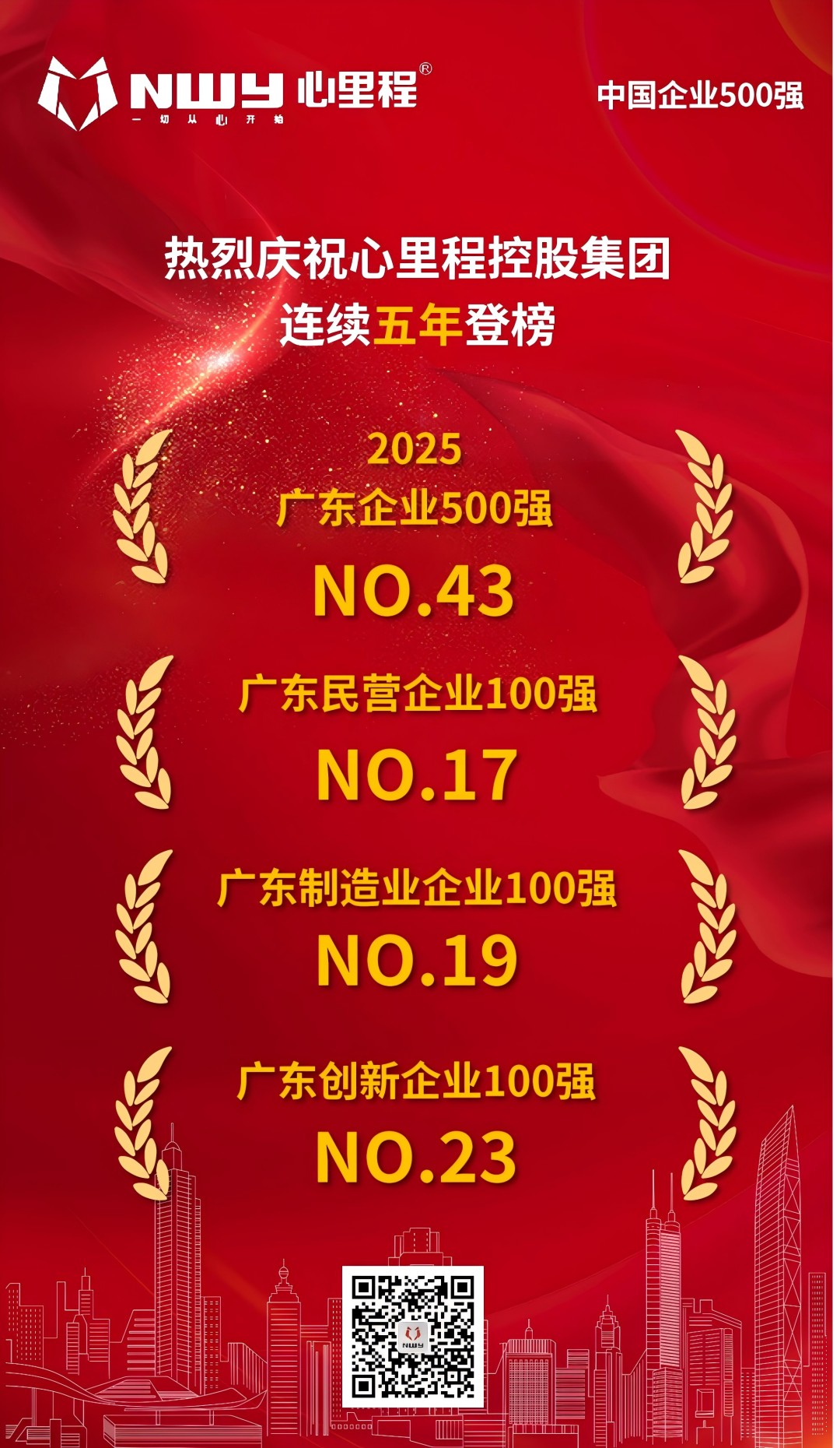 近日,广东省企业联合会、广东省企业家协会(简称“省企联”)在广州召开新闻发布会,正式发布了“2025广东企业500强”、“广东民营企业100强”、“广东制造业企业100强”、“广东服务业企业100强”、“广东创新企业100强”等五个榜单及相关分析报告。心里程控股集团再次脱颖而出,凭借自身卓越的企业实力和持续的创新驱动,连续五年成功登榜,在“2025广东企业500强”中位列第43名,同时在“广东民营企业100强”中排名第17,“广东制造业企业100强”中排名第19,“广东创新企业100强”中排名第23。