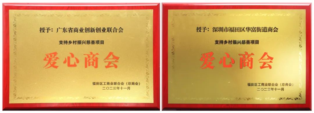 会议现场为福田区工商联积极参与乡村振兴慈善项目的会员企业及行业商协会代表授牌,并启动福田区民营经济高质量发展行动。由心里程集团担任会长单位的广东省商业创新创业联合会、深圳市福田区华富街道商会,同时获得冯德崇副主席亲自颁发的“爱心商会”奖牌。