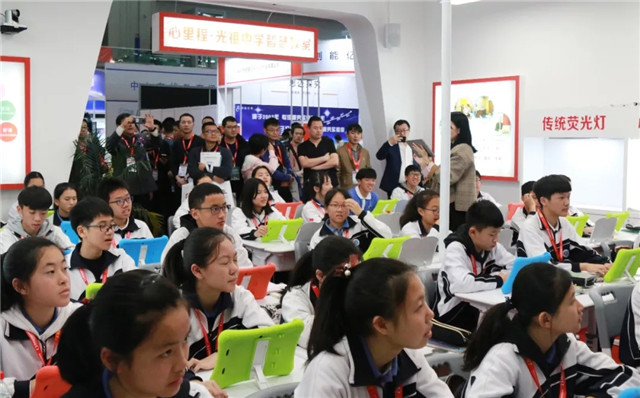 作为深圳市教育装备行业协会会长单位,心里程集团携自主研发的教育信息化整体解决方案——“心里程智慧云校”亮相展会现场,其中包括互联e课堂、智能录播、护眼灯、纳米黑板、创客空间、智慧体育、校园电视台、云网络教室、智能电子班牌、一体机、AR、MR等十多项核心产品,全方位、多角度地展示了心里程教育信息化研究成果。尤其是“心里程光祖中学智慧示范课堂”,成为本次展会的一大亮点,吸引了大量地方领导、教育专家、学者、院校师生及业界企业代表驻足观看,并获得多方认可。