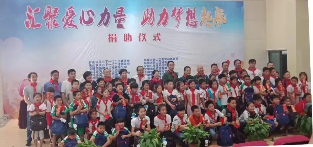◇为深入贯彻党的十九大精神,关爱贫困儿童健康成长,在2018年“六一”儿童节前,安徽心里程科技有限公司联合安徽省蚌埠市蚌山区关工委、区教体局、燕山乡关工委、城南商会关工委等,在蚌埠第二十六中燕京校区开展了以“凝聚爱心力量、助力梦想起航”为主题的捐助活动。